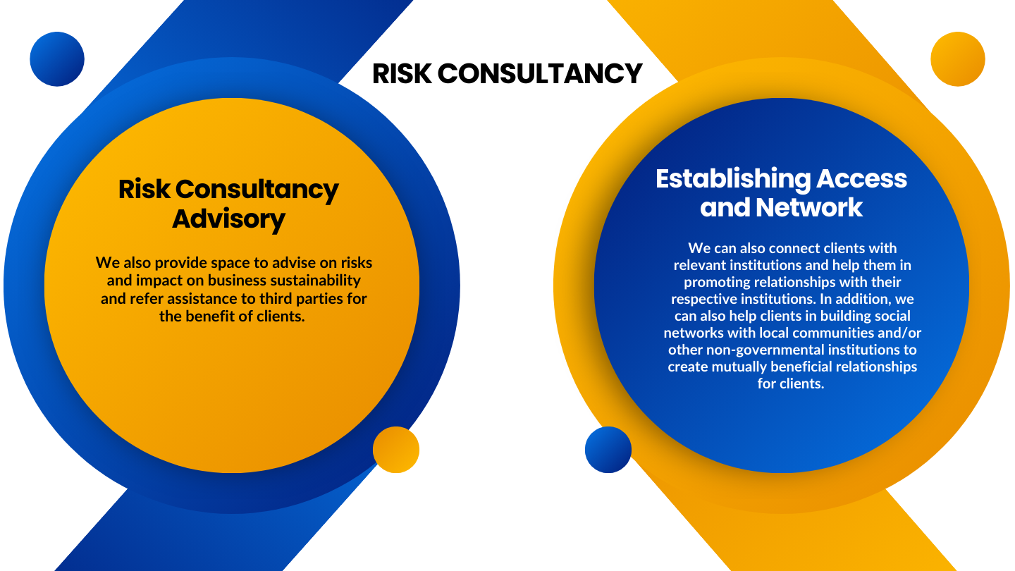 We also provide space to advise on risks and impact on business sustainability and refer assistance to third parties for the benefit of clients.